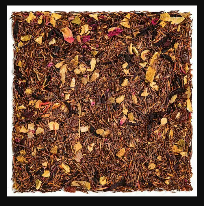 Ingredients: Rooibos, hibiscus, rosehips, apple, safflowers, rose petals, vanilla and citrus flavors